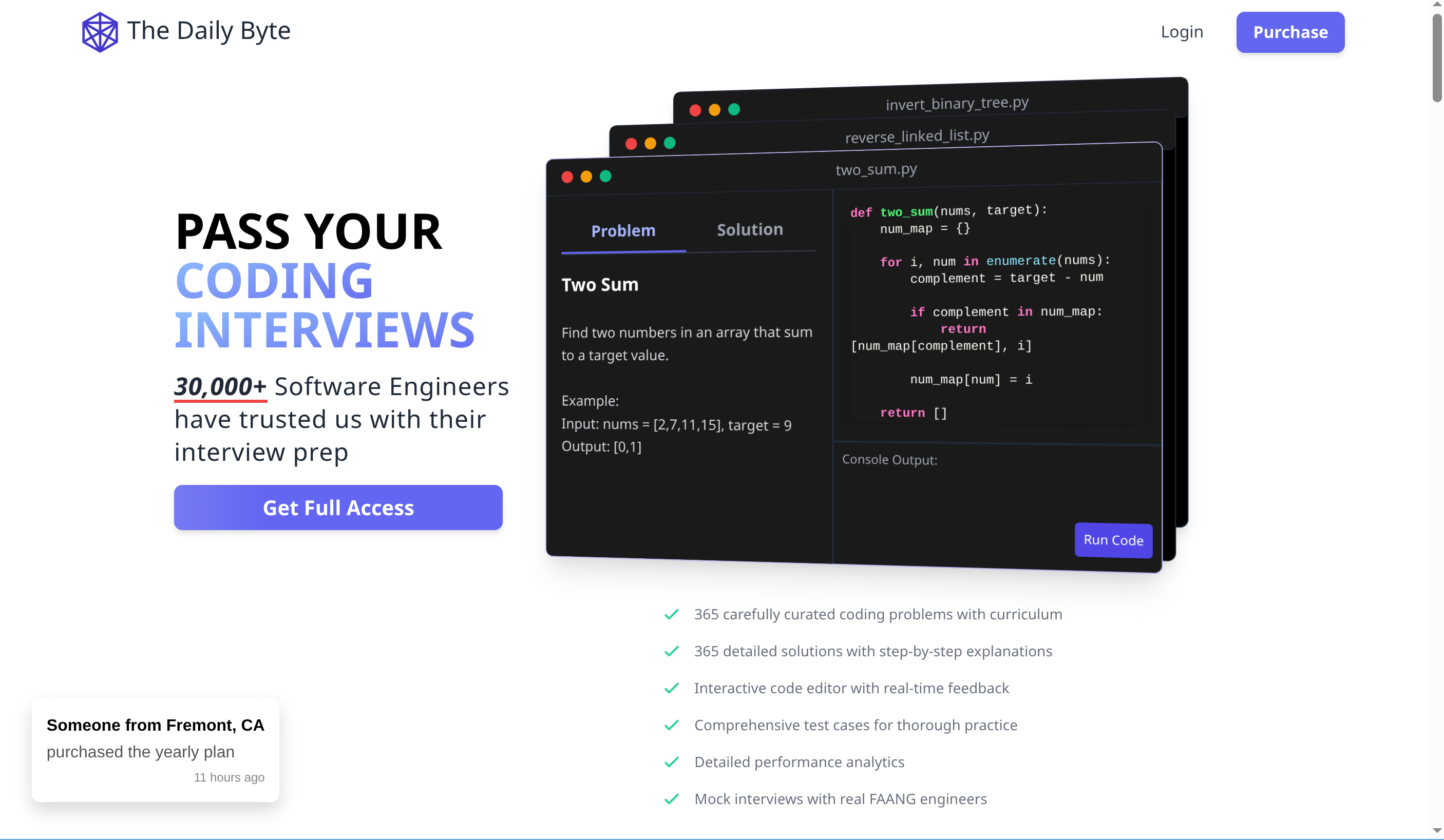 30,000+ Software Engineers have trusted us with their interview prep.Maintainer - Kevin Naughton Jr.