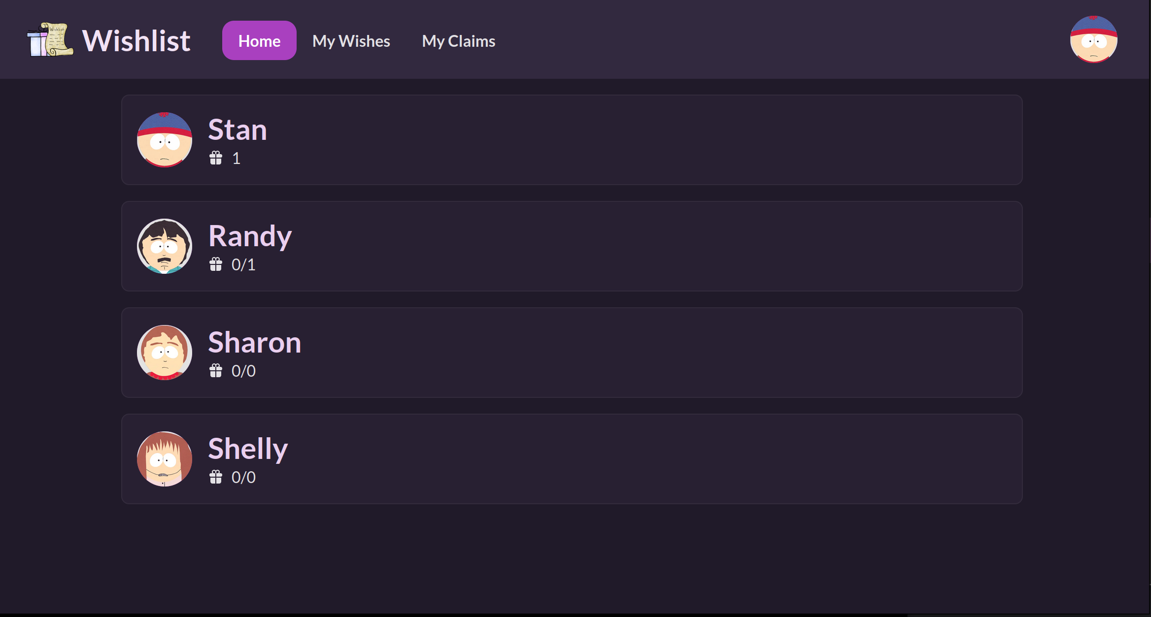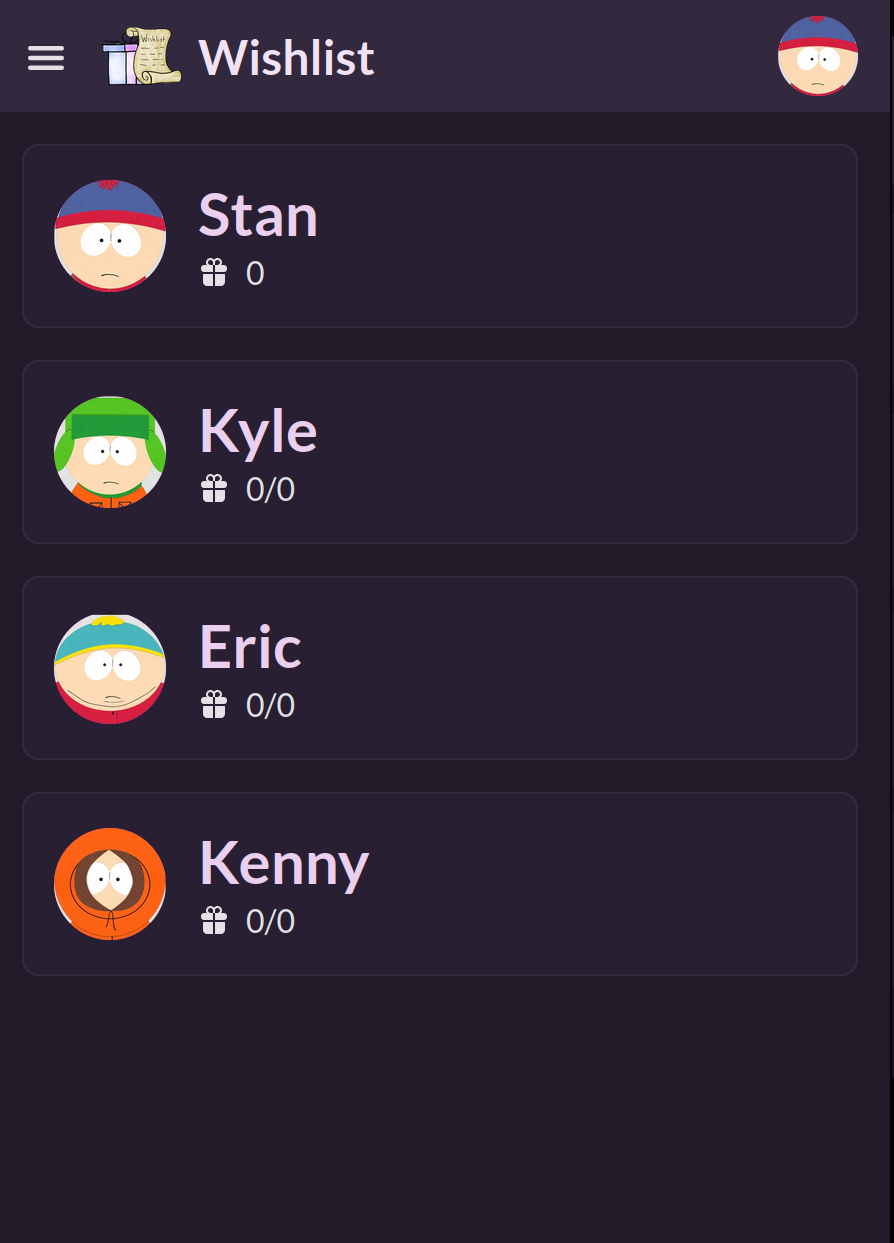 Wishlist has support for multiple wishlist groups. For example, you can have one group for friends and one for family. The wishes on these lists will be completely separate. You can switch between groups using the menu when you click on your profile picture.