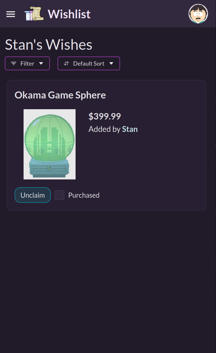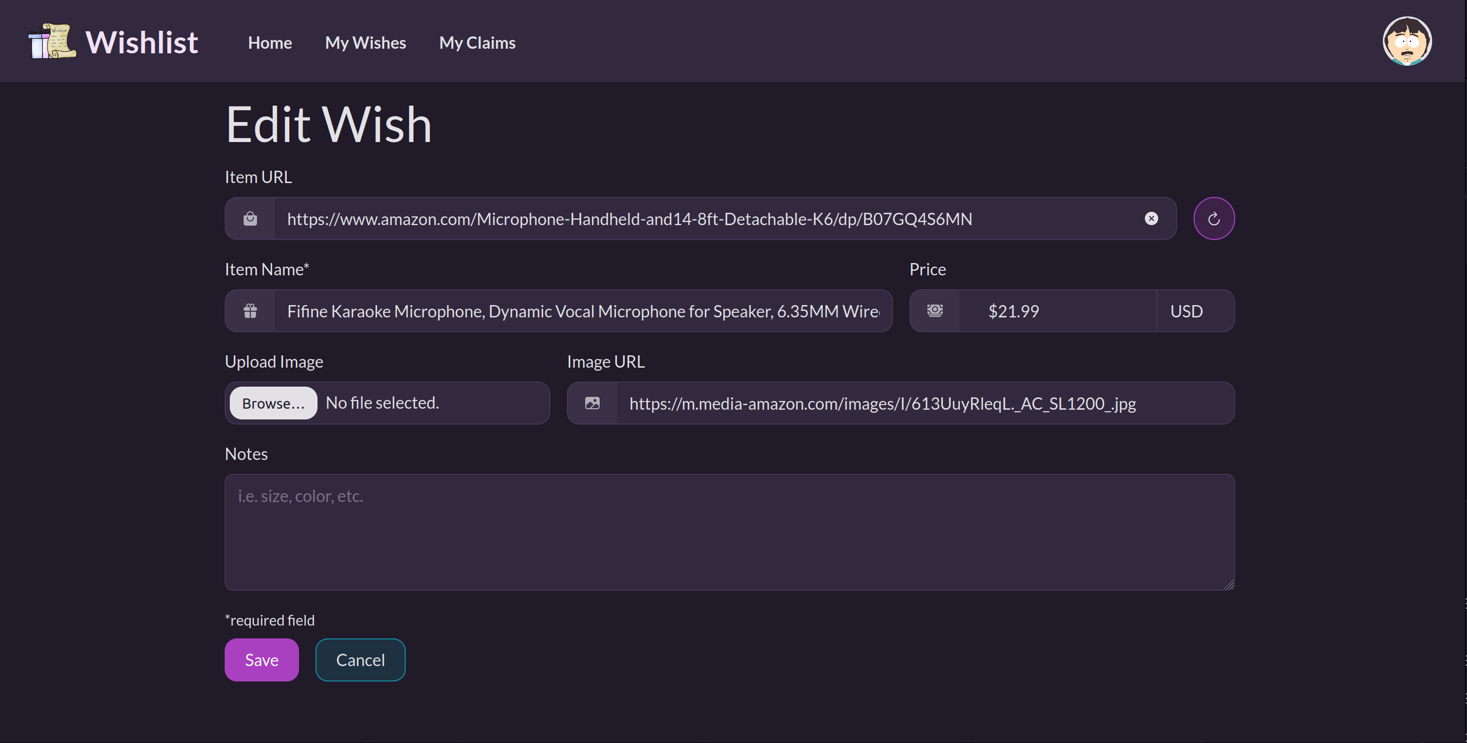 Wishlist is a self-hosted wishlist application that you can share with your friends and family. You no longer have to wonder what to get your parents for the holidays, simply check their wishlist and claim any available item. With a simple user interface, even the grandparents can get involved!